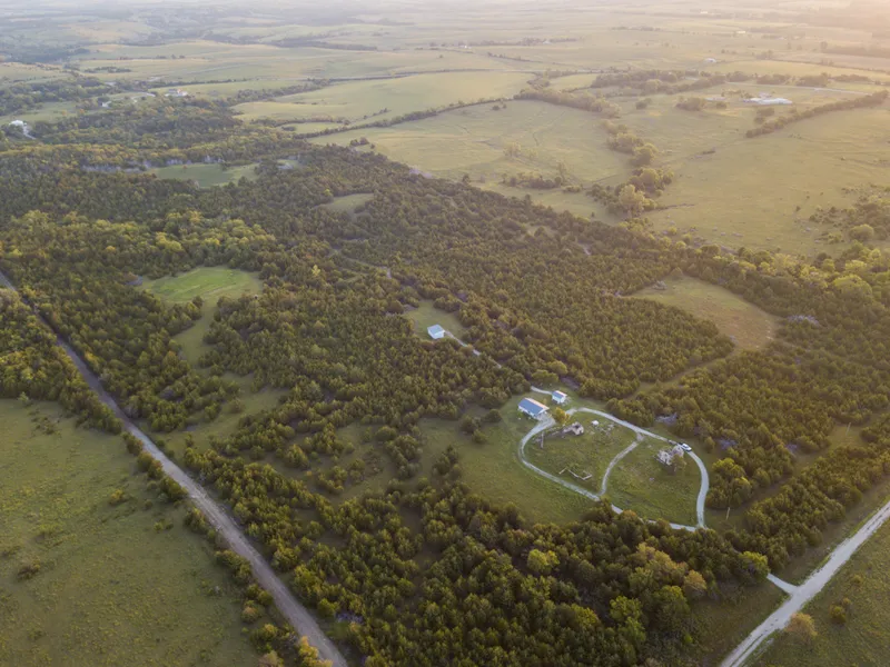 Located in central Pottawatomie County, just south of Westmoreland, this 81.5 +/- acre property offers a rare blend of scenic beauty, tasteful improvements, history, and wildlife habitat. The topography of the land rolls with 80’ of elevation change, shrouded in cover. Cedar trees make up the majority of the timber with one hardwood draw and a few scattered cottonwood trees. Cleared areas of native grass provide natural forbs for wildlife cover and food. Tucked in the hardwood draw lies a year-round natural spring providing a valuable water source even in times of drought. An extensive trail system courses through the property, connecting the cleared native areas with the 2 food plots that are situated on the northern side of the farm.
