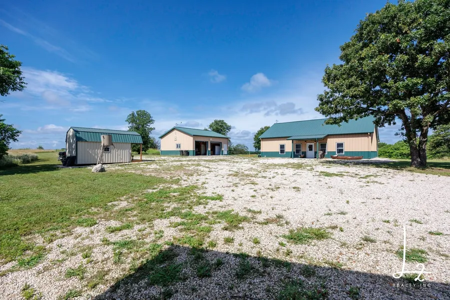 The fully furnished hunting lodge provides a warm, inviting retreat after a day in the field. Designed for relaxation and entertaining, it offers three bedrooms furnished with beds and two well-appointed bathrooms, plus a spacious living area with comfortable couches. The open-concept kitchen features granite countertops and stainless steel appliances, including a refrigerator, oven, and dishwasher, perfect for preparing meals or hosting gatherings. Just outside, a large covered patio extends the living space, offering an ideal spot to unwind, share stories, and take in the peaceful Kansas sunsets.