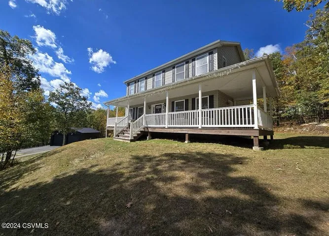 Professional pics SOON! This stunning two story home offers open concept living on 2+ acres! Step into this beautifully designed 3 bedroom, 2.5 bath home and fall in love with its modern open concept layout. Perfect for today's lifestyle, this home features a dedicated home office with built-ins, ideal for remote work or study. The main living space flow seamlessly, leading to a composite rear deck for outdoor entertaining, while the front offers a charming wraparound covered deck, perfect for morning coffee or relaxing evenings! The spacious kitchen with granite countertops and ceiling height cupboards has a two tiered center island for all to gather. The adjacent family room has a propane stone fireplace and hardwood floors throughout. The formal dining room completes the first floor