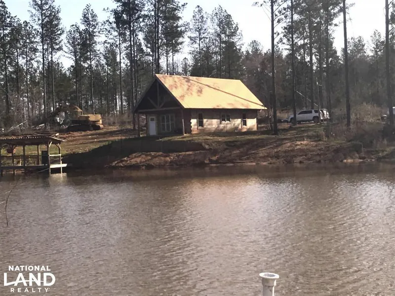 UPDATED PICTURES Brand new cabin built overlooking pond with 35+/- usable acres. The 900 square foot cabin with 380 square foot loft is almost finished and is being completed by the seller whose trade is construction/remodel. It has power, water, central heat/air and a wood stove. Cabin includes 1 bedroom (with closet), 1 bathroom (with tile shower and linen closet), stonework behind the wood stove, living area, full kitchen (granite countertops-to be installed), laundry room, spiral staircase to large loft, etc.!!!! Newly installed light fixtures, septic tank, dry wall and doors. Interior walls feature wood sawn from trees on the property! This is a must see! Property also has a 32%u2019x48%u2019 barn with plenty of room for anything you would need. Cabin overlooks a beautiful, stocked pond with covered dock to fish from. Up to half of the pond to go with the sale of the 35+/- acres t...