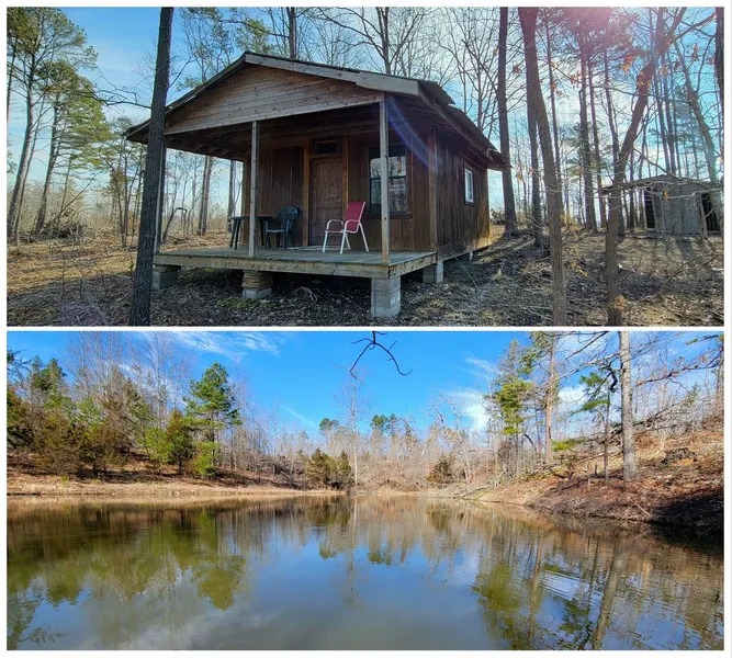 110 acres in Texas County, MO for sale! It has recently been logged but plenty of young timber left, and big enough trees for your trees stands. There is a nice off grid cabin that is furnished, and a porch off the back with pretty views. It also has a storage shed and outhouse. There is a road that winds through the property,and has a nice sized pond. A few open spots that would be great for food plots. Lots of deer sign! The topography has a great combination of ridges and draws, benches and south facing slopes. Road frontage on the east side, and an easement road on the NW corner, which is great for having multiple ways to access your hunting blinds or stands. With the recent logging, good topographyand water, this tract has great wildlife habitat. Along with the furnished cabin, this makes for a wonderful turn-key recreational getaway. Make it yours just in time for turkey season and to start those food plots to chase whitetails this fall! Power lines run through property.