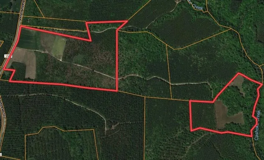 The property has 2 separate tracts, 56 acres of field and natural growth pine/hardwood mix in the front providing cover and food for wildlife and 26 acres in the rear with a 7 acre field for a crop or food plots. The back portion is surrounded by hardwood bottom perfect for hanging a bow stand. There is deeded access to the rear tract.