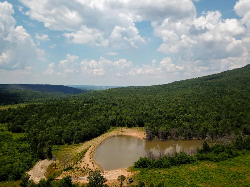 Land: There are 90acres (m/l) of land that has varied terrain features ranging from valley pasturesto densely wooded ridge-typehills laying along the western slopes of Cavanal. The elevation change across the property is about 200 feet. About 30% of the land (30 +/- acres) is cleared with and can be used as pasture and meadows for grazing livestock or food plots for wildlife. This type of land could be usedfor fruit, berries, garden crops of all kinds, pasture and meadows. The remaining 50% of the land contains timber that is native to south-eastern Oklahoma including a diverse variety of oaks, hickory, eastern red cedar, ash, hackberry as well as a nice mix of evergreen native shortleaf pine. From the western part of the property there is a panoramic valley view of the surrounding countryside and mountains. There is an elevated and cleared knoll on the property that overlooks the valley the small lake and could be used as a cabin site or off grid homesite.The western property line has frontage along a county farm to market road (Ogden Mill Rd).