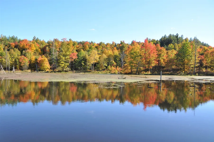 CAMP POND is a small pond formed by Beaver Brook and beavers, just north of the old Bear Hunting Cabin (old hunting camp has tons of bear sign along the exterior walls, structure is of no value, sold as is), lots of minnows, frogs and visits from deer at this watering hole pond fed by Beaver Brook.