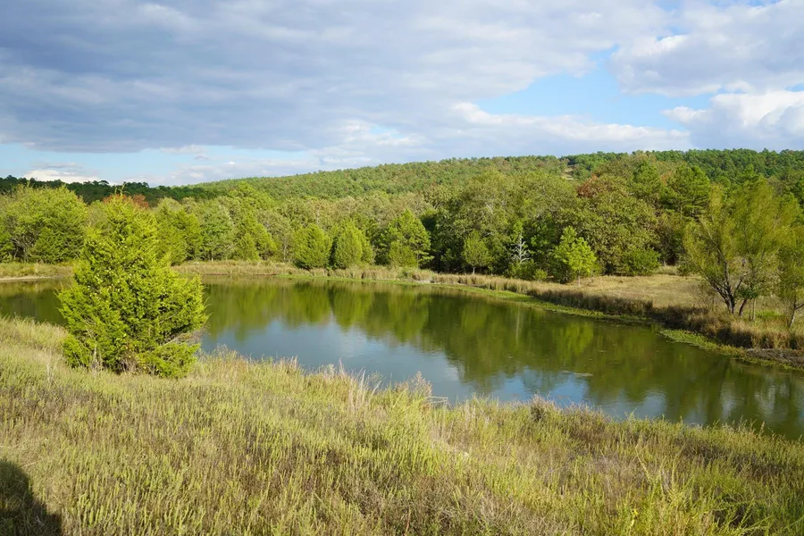 Land: This property is part of the well-known Bar S Ranch which is famous in the area for its ability to produce giant Whitetail Deer every single year. It has an ideal balance of open ground, dense mature timber, hills, draws and creek bottoms, providing for excellent trophy white-tailed deer habitat. Very good stand of marketable hardwoods and improved pine trees. The open ground has excellent soil and can grow a lot of forage, it has been bailed for hay in the past. This valley setting is a natural saddle and is a funnel for deer travel. The joining ranch to the east is managed for quality deer and consist of about 3600 acres. The ranch has not been hunted in 2022. Owner says its common to see 7-8 different bucks driving to the cabin. Elevation on the entrance to property is approximately 520 ft. then it gradually increased to 680 ft. at the off grid cabin at the highest point on the ridge with a mountain pond very close to it which is partially covered with lily pads and is loaded with fish and a year around water source for wildlife. Looking out the window of the cabin or sitting outside by the fire pit the views are breath taking, you can see for miles and you will feel like you are in Colorado! On the ridge and going up on higher ground there is mass amounts of gigantic moss rock which could sure be a very lucrative source of income if marketed correctly and sold. The pictures truly do not do it justice to how big and beautiful these rocks are. There is an abundance of shale in a spot of this property that could be used to build roads, building pads, or sold for extra income.