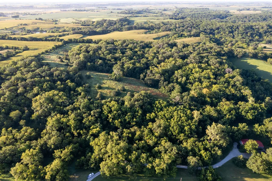 As you head south into the timber, there are multiple points to access, along with trail systems to get you around to all corners of the farm. This property offers great hunting opportunities with world-class deer and strong turkey populations calling this area home. Multiple box blinds and ladder stands will go with the sale. Approximately 6 acres of open ground could be used for food plots, pasture, etc. The timber consists of mixed hardwoods, primarily oak, hickory, and a lot of medium-sized walnut.