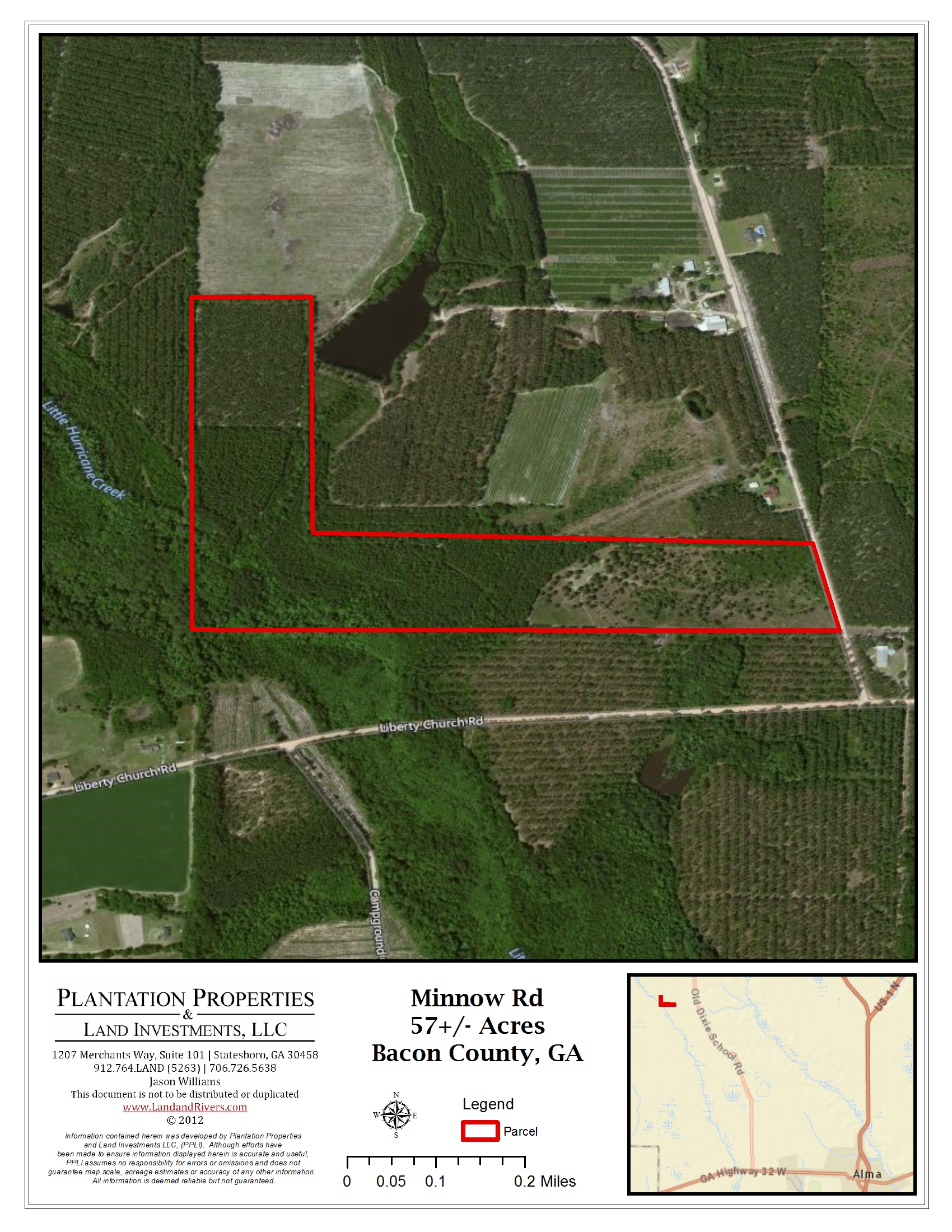 57+/- acres of land that features a great interior road system, 10+/- acres of planted pines and a good mixture of natural timber with hardwoods. Enjoy spending your days fishing in Little Hurricane Creek that is located at the bottom southwest corner of the property. There are several different locations on the property that would make a great place to build a home or that weekend cabin getaway. This tract of land is a great habitat for deer and other wildlife. Enjoy hunting, fishing, trail rides, camping and more all on your own land. Property is located only minutes from downtown Alma, GA. Call Jason today for more information or to set up a time to tour the property! 912.764.LAND (5263)