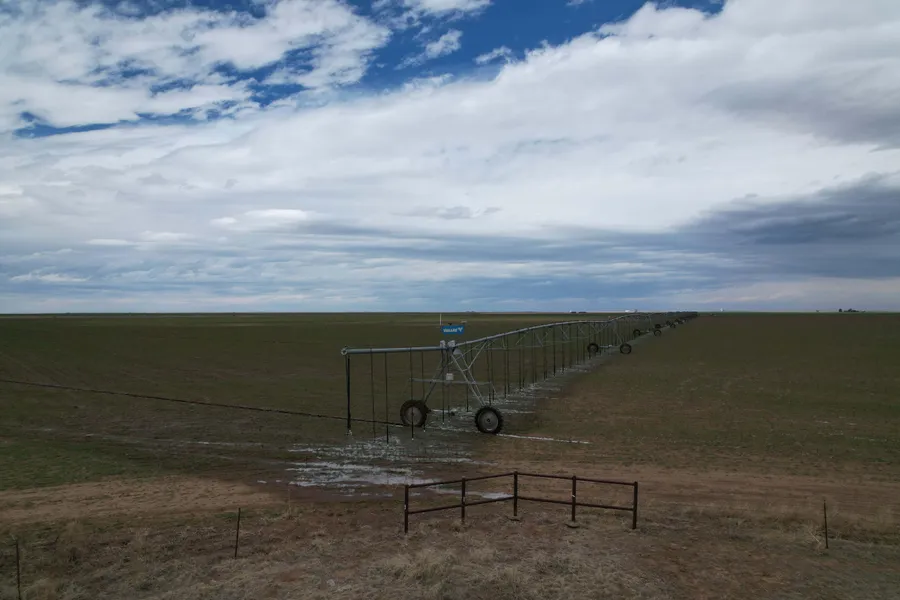 This is a very nice laying large acreage tract with excellent soils. Single phase electricity and natural gas are present. Three phase electricity is less than one mile away and the existing single phase line can be converted if desired. One irrigation well pumping 350 +/- gpm sits in the NW corner and provides water to the farm. A newer 380 +/- acre Valley Sprinkler is owned by the Seller and will convey. A second 120 +/- acre Valley Sprinkler is owned by the Tenant and can be purchased separately if desired. There are a lot of contiguous acres on this farm to explore for more water. Rough grass to the south and east provides a protection buffer from future irrigation pumping pressure.