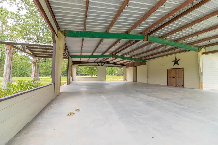 INVESTMENT OPPORTUNITY on busy State Hwy 190, rapidly expanding corridor between Huntsville (Walker County) and Lake Livingston. Lots of commercial development in this area. Large covered commercial pavilion on slab (approx 3,500 s.f. per seller), steel frame, insulated walls, water, septic, electrical, his and hers restrooms, and storage. Was previously a wedding /reception facility. Could easily and affordably be enclosed, glassed in or screened in. 6.53 unrestricted acres with over 1,000 feet of State Hwy 190 frontage. Unlimited possibilities. High elevation - no flooding! Low taxes.