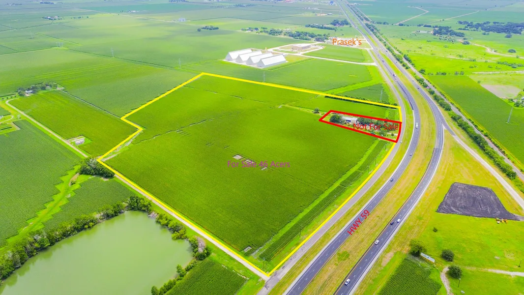 Prime investment opportunity! This 46.8 +/- acre agricultural property is currently in cultivation with a tenant farmer. With Hwy 59 frontage road access and an agricultural exemption, this property is outside nearby ETJ but close to successful local businesses. Located near the FM 441 exit for easy access on and off Hwy 59, TxDot is even considering taking some of the acreage to improve the existing frontage road. (Buyer to do due diligence to determine if this would impact their plans.) Please call for an appointment and do not access property without an agent. Don't miss out on this fantastic opportunity call for more information today!