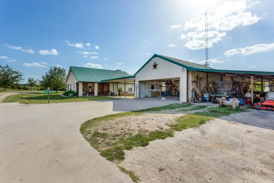 Almost 22 acres of beautiful rolling land with a nice 2 BR 2 Bath Austin Stone home that has metal roof, fireplace with gas logs, detached garage, shop and barn. In addition, there is a separate dining room, utility room and office area. Kitchen has granite countertops, abundant cabinet space. Kitchen, bathrooms and utility room have tile flooring. Dining room, living room, bedrooms and office have wood flooring. Other outside features include a vegetable garden area and orchard, chicken coop and stocked pond. Perfect place to enjoy country living. Call for appointment.