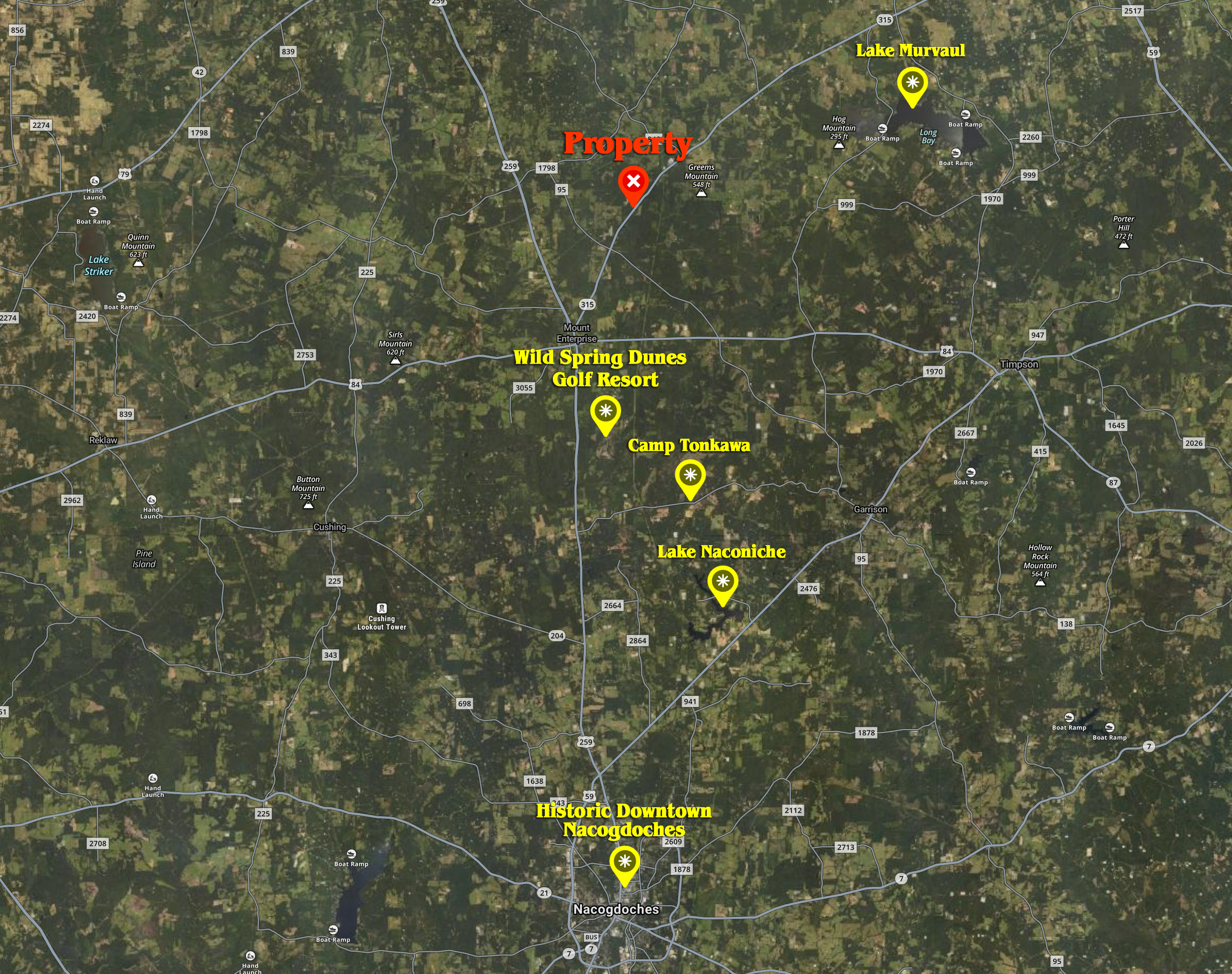 The area this 2.50 Acres is located in cannot be mentioned enough. Most notable, this property is located only 10 minutes from the planned ~$1B dollar Wild Spring Dunes Golf Resort. At the current price point, the savvy investor may take note, as this golf course is sure to greatly appreciate land values in this immediate area for years to come! This property is also located only 15-20 minutes from Lake Naconiche and Camp Tonkawa Springs & Campground, providing excellent recreational opportunities for the family! The small town of Mt Enterprise is 10 minutes down the road, and just 30 minutes from the property is the college town of Nacogdoches (the oldest town in all of Texas!), which many aptly consider the "heart-beat of East Texas", with the Historic Downtown Nacogdoches, numerous entertainment outlets, rich culture, and any amenity one may need.
