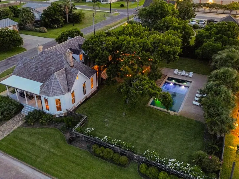Step into Rockports rich history w/ the iconic 1868 R.H. Wood Housea blend of preserved heritage & modern luxury. A Registered TX Historic Landmark, this property has been masterfully restored, honoring its legacy while elevating comfort & aesthetics. This property also boasts a proven track record as a successful income generator through VRBO. The home features long-leaf pine flooring, a testament to its original craftsmanship. A discreet high velocity HVAC system ensures comfort w/out compromising architectural integrity. The dedication to authenticity shines through salvaged materials from across TX, including a grand staircase from East TX & repurposed rafters ingeniously transformed into kitchen countertops. Formerly unused attic space was transformed into a bright/airy living area under magnificent exposed beams, creating a spacious 2nd story. The distinctive cedar shake roof adds to the home's timeless curb appeal. Nestled in the Heritage & Cultural Arts District, this property is steps from Rockports waterfront, galleries, diverse dining, festivals, & boutiques. Relax by the heated pool & spa, a perfect oasis. The lush, impeccably maintained landscaping, complete w/ heritage pecan trees, is effortlessly cared for by a private well-fed irrigation system. Built-in mosquito misters ensures your comfort day/night. Expansive screened porch, perfect for enjoying the evening tropical breeze & the gentle rustling of palm trees. Outdoor lounge, complete w/ a cozy fireplace, grill, & a convenient full bath. Additional modern conveniences include a Sonos sound system that fills both house & yard, elegant copper gutters, & an EV charging station. As the homeowner shared, this house "still stands proud after 150 years of births/deaths, times happy/sad, weathering storms/strong winds..a timeless beacon of hope & a symbol of the strength & resiliency of the people of Rockport." Mostly furnished, this turnkey property invites you to begin your Rockport story now.