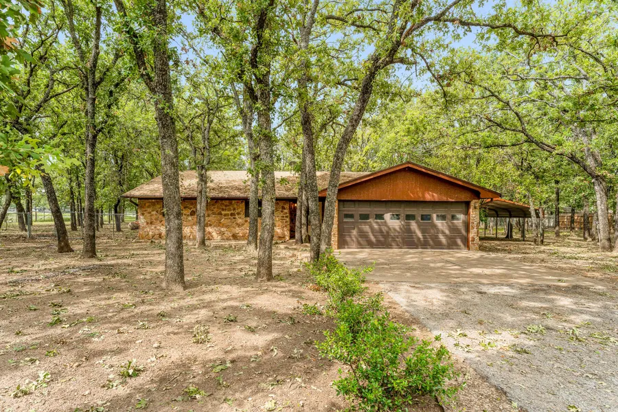 Nestled amongst mature trees sit this well maintained 1,578 sqft 3-bedroom, 2-bath home. Ideally located less than 4 miles from town, in the Stephenville ISD school district. Greet your guest and welcome them into the nicely sized living area, their eyes are sure to be drawn to lovely stone wood burning fireplace. Tile flooring throughout the home except for carpet in the bedrooms. Step outside and relax under the large, covered patio. Chain length fencing around the backyard and the around the 1.737 acers is also completely fenced. Plenty of room to add a cover and keep a horse or two if you please. Property currently has a water well, along with access to Greens Creek water.