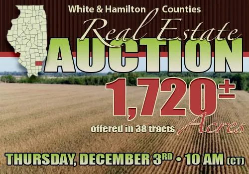 1,720+/- Acres offered in 38 Tracts Productive Soils High Percentage Tillable Hunting Land 38 Tracts (3) Homes Grain Storage Farm Headquarters with Modern Shop and Equipment Buildings ONLINE BIDDING AVAILABLE