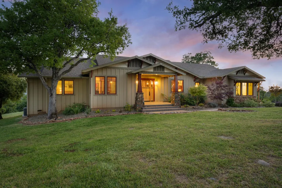 Imagine your dream lifestyle. Creating memories, relaxing and enjoying gorgeous views, strolling your private Vineyard. The hill top estate offers an amazing lifestyle. This Craftsman style Sidle built home, exudes high-end amenities and the highest of quality throughout. Incredible details, inlaid hardwood floors, coffered ceilings, heritage old redwood beams and accents, waterfall glass wall, wine cellar, grand open living space. Local artisan hand crafted and original piece of art hung on the dining room wall, highlighting the lifestyle of the California Foothills. All hands on deck in this fabulous kitchen, everyone will enjoy creating meals together around the marble top island. Need to work from home? Private offices are setup and ready. Detached from the home are 3 potential guest suites. An Impressive shop that will house cars to tractors, you choose. RV parking allocated on the side of the shop with hookups. Cultivate fruits and veggies from the fenced garden with raised planter beds, and an assortment of mature fruit trees. Seamless transition from indoor to out, offering the best of California Living.