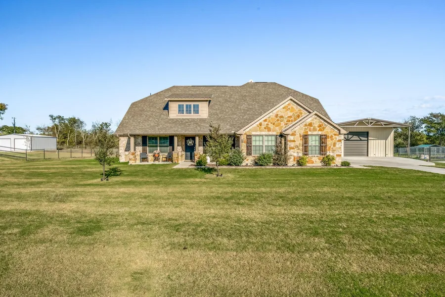 This immaculate 4 bed, 3 bath home built in 2022 sits on an acre lot and features a 2-car side-entry garage and shop with electric and 2 oversized roll up doors, concrete driveway, and covered porches. Walk inside and it only gets better, some of the standout characteristics of the home are a rock, wood-burning fireplace, wood flooring with tile in Kitchen and bathrooms and granite countertops. You will find a formal dinning room right inside the front door or this space would make a great office. Split bedroom design layout of the house has 3 bedrooms downstairs and 1 bedroom upstairs as well as a second living space or game room and full bathroom. All 4 bedrooms are carpeted and the master bedroom features a bath with a tile shower and separate tub, dual-sink vanity, a large closet. Schedule your showing today!