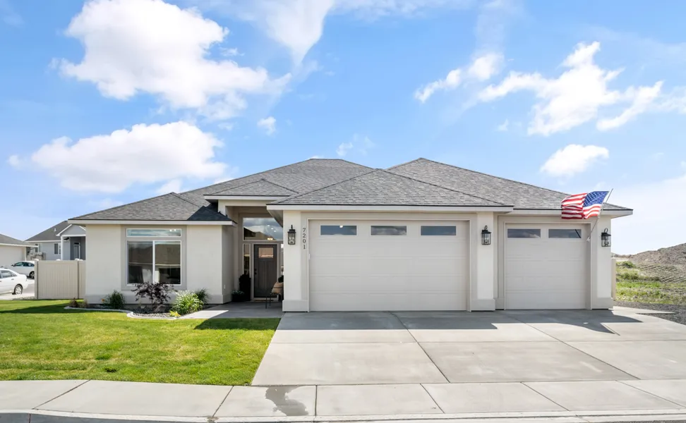 This stunning home is warm and welcoming with sophisticated touches and elegant finishes from the entryway to the garage. Located on a desirable corner lot in the highly sought-after Apple Valley subdivision, where you will appreciate expansive views to the West. Stepinside to find 2,000 sq ft of immaculate living space, 3 bedrooms, 3 baths plus a den/flex room. Embrace a perfect blend of comfort, style, and functionality — and it’s less than a year old! The airy great room features 11’ ceilings and expansive windows that allow for natural sunlight to pour in. A cultured white stone fireplace with hearth seating adds a cozy touch, while laminate flooring throughout the living areas and den offers both durability and luxury. The kitchen is a true centerpiece with quartz countertops, stylish white cabinetry and a spacious island. The walk-in pantry includes additional cabinetry and a quart...