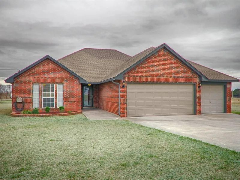 Immaculate home in Humphrey Estates has 4 bedrooms or a study and 3 bedrooms. Split bedroom floor plan with large master suite that connects to master bath and front bedroom/study. Professionally-done Updates in the past two years include: 3.5-ton 14 seer heat pump; carpet; refinished woodwork; interior paint; plumbing fixtures; dishwasher; disposal. Beautiful, wood burning fireplace. 1 acre has room for a large outbuilding with easy access from County Line Road. 3 car garage has workshop area with 3 circuits and upper cabinets. Work benches, washer & dryer are negotiable. 12X16 wood outbuilding. Great location, close to OKC metro. Great countryside views to the east!