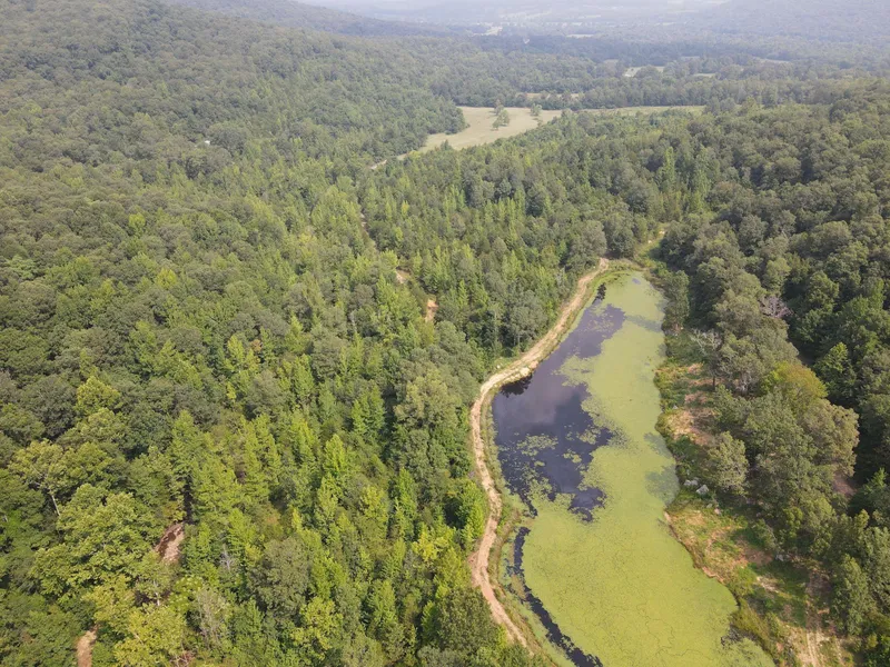 This fantastic hunting tract has all of the checklist covered. With an incredible location just 5 miles from Mountain View, AR, you won't be in need of anything that isn't just minutes down the road. About 1/4 mile off Highway 5 the easement road provides good access. The tract also sets just 10 short miles to the National Forest, public hunting, public fishing, campgrounds, and more. A few minutes away is also the famous White River for world-class trout fishing! The proximity to all your necessities doesn't detour from the incredible privacy, seclusion, and peace you find on this one. Tucked in the heart of the Ozark Mountains with massive timber tracts all around definitely adds to the "getaway" that so many folks are looking for. As you drive in, you are met with a picturesque field with established grasses and clover sprinkled with walnut trees, all along the creek bottom. The year-round creek is spring-fed and doesn't run dry, even in the droughts. The fresh crystal clear water rolls through the native rock and creates a wonderful water source for resident wildlife. Along the creek is another excellent spring that is developed complete with a building, pump, walking rafters, and wiring. This spring is the source for the fully furnished mobile home used as the camp. The mobile is in great shape and has 2 bedrooms on a split floorplan, kitchen, bathroom, laundry, and a front and back porch with amazing views of the bottoms below. The massive metal shop is roomy with large bay doors and provides incredible storage for machinery, tools, feed/seed, implements, and any other supplies you may need. The land flows up from there into some of the prettiest mountain countries you'll see. The towering hills join some impressive bluffs that are home to monster black bears and vista panoramic mountain views. The trail system takes you all throughout the property along many flats, benches, and draws that all are loaded with mature and marketable hardwood timber. Some stands of marketable pine are spread throughout as well. The amount of cover and native browse for the deer is impressive. This combination of open ground, gentle topography, large elevation changes, large timber, and trails is very hard to find; much less all on one private tract. One of the many jewels in the crown of this gorgeous Ozark hunting paradise is the amazing 1.5 acre lake. This lake is loaded with fish, spring-fed and plenty large enough to get a boat in. Numerous trails all lead to the big body of water and the setting is simply inviting with large oak trees on the banks creating a park-like experience. The collection of all these features are what create such a special hunting tract that is loaded with all the wildlife need. The resident herds and flocks are plentiful. No matter if you are chasing big whitetail bucks, ground dragging gobblers, or huge mountain country bruins, it's all here. You don't want to miss this, call today for your private showing!