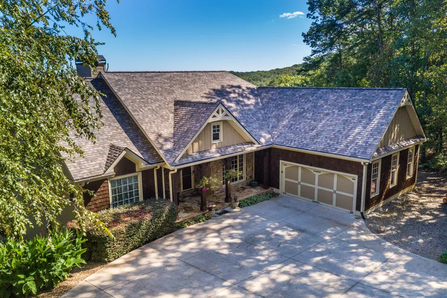 If breathtaking long range views are at the top of your list, and you want to be in a private location but you still want to be within 5 miles of town, you need to start by looking at this home! This 4 Bedroom 4 Bath home features Grand living on the main with gorgeous tongue & grooved vaulted ceilings and stone masonry fireplace garnishing Livingroom with breathtaking views to the Southeast. The vaulted ceilings continue to the center section of the fabulous rear screened deck for the ultimate in relaxing and Green Egg creations! Gas line stubbed up for gas grill. Walk out the Master onto the deck and get into the Hot Tub to finish off the evening. Master Bath has Jacuzzi Tub and not just double vanity but his and her vanities. Great guest room and bath on the main with open concept formal dining room. Descend into the fully finished basement to discover huge media/game room with another grand rear deck for entertaining or just large family gatherings. Basement offers split bedroom floor plan with separate bathrooms for extra privacy among guests or family members. Large storage room that is great for storm shelter or day sleeper for maximum darkness. One of the best discoveries on the terrace level is the large craftsman's workshop with high ceilings that could easily be turned into a 5th bedroom with the addition of a closet. Utilities room is a masterpiece of design and too many other details to mention. Must see!