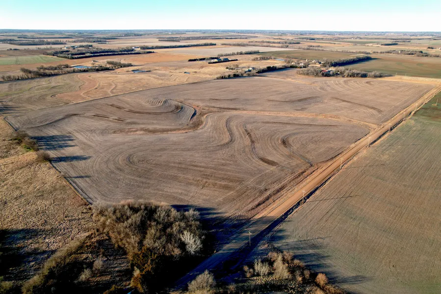 Just south of Inman is 70 +/- acres of fertile cropland available to plant this spring. There is access from Buckskin Road and paved 8th Avenue. 8th Avenue turns into Main Street in Inman and to the south, Buhler Haven Road. This location is easily accessible from K61 Highway, Inman, and Buhler. The farm is characterized by a gentle slope from northwest to Southeast. The terraces have been well kept, and clean waterways drain the 66.82 acres of FSA cropland. The soils are fertile and have dependably generated excellent yields. The NCCPI Productivity Index is 63, well above average for the area. Silty Clay Loam soils with a little elevation change make efficient use of crop inputs. 41.8 wheat base acres with a 54 PLC yield, and 20.20 acres of sorghum base with PLC yield 86bu. Currently in soybean stubble, the farm is available for spring possession and planting of your full-season crop.