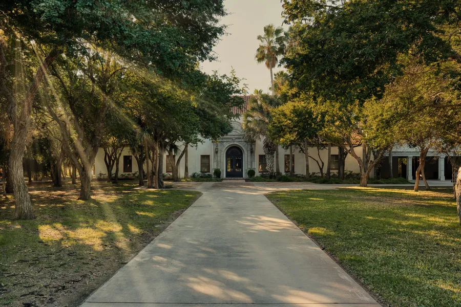 Located within Rancho Viejo sits an oasis all to itself. This impressive 135+/- AC waterfront estate encompasses an Ebony Tree Rainforest, Spanish style hacienda, horse stables, equestrian arena, pastures, and native habitat surrounded by a resaca. Resacas are bodies of water left from when the Rio Grande River changed riverbeds over the course of the last 100 to 10,000 years. These bodies of water are unique to the Rio Grande Valley and home to many species of flora and fauna, from native Mesquite, Ebony and Palm trees to exceptional birds, fish, and butterflies. A private, gated entry welcomes you into this birdwatcher's paradise. As through the abundance of spectacular trees emerges a majestic Spanish home with a carved Cantera stone entry, white stucco facade, custom-crafted brass and iron entry doors, and a striking red-tile roof. This 6-bedroom, 5.5-bathroom home features soaring ceilings, stunning spaces, and light-filled rooms.