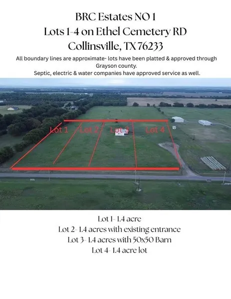 4 lots available on paved country road outside city limits of Collinsville, TX in Grayson County.