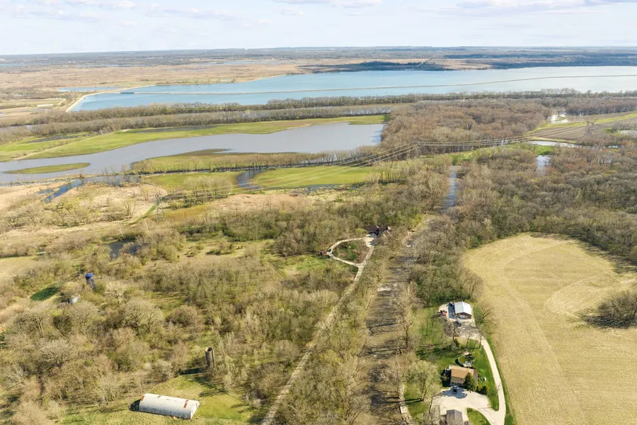Imagine yourself meandering down a serpentine path bordered by majestic, mature trees, leading to your exclusive sanctuary. This exceptional custom home is nestled in secluded, wooded splendor, spanning around 89acres (more land is available if desired) overlooking Aux Sable Creek. Its awe-inspiring traditional architecture, accented by enduring brickwork, emanates timeless allure. Every aspect of this extensively upgraded residence radiates personality, from the striking great room with a stone fireplace and expansive windows offering panoramic views, to the opulent master suite on the FIRST FLOOR boasting a spa-like glamour bath. The gourmet kitchen is a haven, featuring a soaring, beamed ceiling, artisanal custom cabinetry, and premium appliances. Host lavish gatherings in the formal dining room adorned with exquisite millwork. Generously sized bedrooms provide ample storage, while the loft area could effortlessly be transformed into a fourth bedroom. The vast lookout lower level offers abundant space for leisure, gaming, storage, fitness, and more. Roughly 25 acres of the property are leased to a farmer. This offering stands as one of the most exceptional and distinctive entries into the luxury real estate market. Indulge in the luxury of a PRIVATE CREEK! Aux Sable Creek is celebrated as one of the state's most pristine waterways, allowing for hunting and fishing on your private 88-acre expanse. Moreover, the creek connects to the Illinois River, ideal for boating and other recreational pursuits. And let's not overlook the opportunity for equestrian pursuits, with a barn featuring electric and concrete on-site.