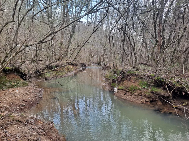 Paved road frontage cleared and ready for a house and barn. Loads of big pine and hardwood timber on Indian Creek. Lots of options here.