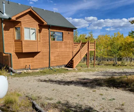 The mostly flat 2 acre property allows easy access off of Kiowa street. An aspen grove on the property gives privacy to the home while allowing the passive solar design to function well in the winter months.