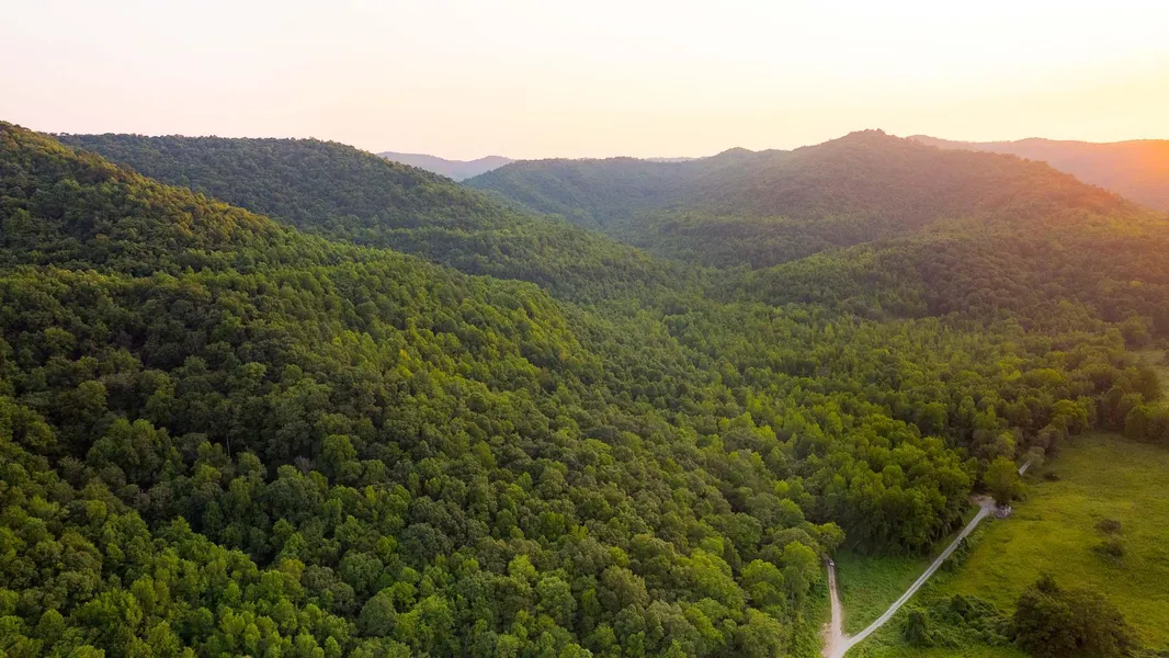 The terrain is a blend of hardwood forests and rolling hills as well as variations of surface water. This includes three ponds located on the Kentucky portion of the land, and the gently flowing Indian Creek that weaves its way through the property. Indian Mountain presents a number of opportunities for its next owner to really create a sense of place and improve the property, further the recreational possibilities, and explore conservation options.
