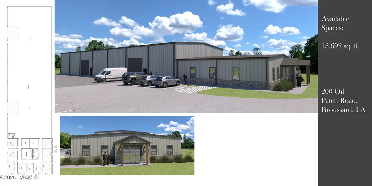 State of the Art - NEW CONSTRUCTION ready in December! 13,692 square foot warehouse/office facility on 1.7 acres in Garber Industrial Park right off of Hwy 90. This top-notch facility will have 3,200 square feet of high-end office space & 10,500 square feet of warehouse. The warehouse will have 23' eaves with and will ready for crane installation. Main warehouse is 70 feet wide by 196 feet deep. The warehouse will have 2 - 14' overhead roll up doors. Electricity will be 3 phase, 480 Volt with 400 amps of service. The executive office area will have upscale finishes, such as 8' doors and quality cabinetry, vinyl wood flooring and ceramic tile. Out of the 9 total offices, there will be 2 large front corner offices, 7 generously sized offices, one lobby, reception area, ample sized break room that doubles as a conference room with a built-in kitchen, and 2 bathrooms. One shop bathroom will be included in the warehouse as well. Easy access for 18 wheelers. Building plans can be modified and added to at this stage. The facility will be ready in 8 months once construction is started. Easy access for 18 wheelers. Building plans can be modified and added to at this stage. Slemco is the electricity provider and City of Broussard for water & sewer.