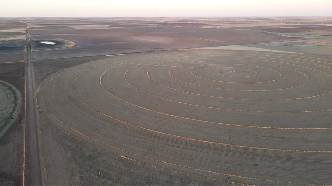 The northeast quarter does not have a pivot present, but does have wells tied together to accommodate a pivot for future use, as well as a pivot pad currently present.