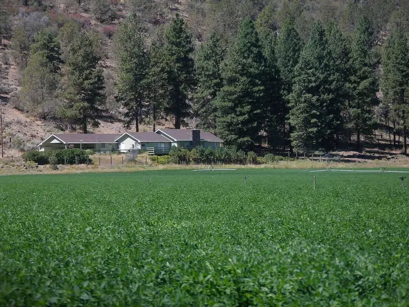 Farm with wells in Swan Lake-- 420 acres near Dairy, Oregon with private well and shared well. +/- 250 acres of farmable ground with water rights and 170 acres of timbered land with mule deer and antelope hunting and habitat. 2100 SF 3 bed/2 bath home, new domestic well, 45 x 120 x 22 pole hay barn, 9 tower pivot, buried mainline, 4 wheel lines, flood irrigation and new stock water well. Comes with the occasional antelope herd visitation!