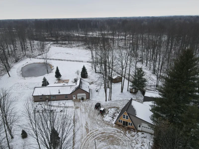 Located in Isabella County about half way between Clare and Coleman on 40 ac! This 3 bed 2 bath home has been very well kept and features in floor heat, solar power and new finished attached garage with in floor heat. Along with this comes a newly renovated one bed one bath A Frame guest house. Attached to this there is a finished 24' x 24' shop and a horse barn. Behind the barn is a fenced pasture area and a pond. The remainder of the property is wooded with a food plot in the middle.*Maps contained on our sites are there to simply depict the over all layout or shape of a given property and show what it looks like from an aerial view. These maps are neither a legally recorded map, or any type of a legal survey and should never be used as such.