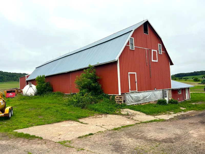 Calling investors/entrepreneurs! This property offers great exposure along west bound I94 near Hixton WI. Surrounded by local ag fields this property nestles nicely in to the rolling farm country of western WI. The dead end road location leads one to a surveyed 3+ acre former working farm site. One realizes a quaint 2 bed 1 bath home with full basement. Basement has a 3/4 bath with laundry area. This property boasts expansive out buildings including a pole shed, machine shed, open sided hay shed/loafing barn and large barn! Consider a hobby farm or a potential business endeavor. Limited animal usage. Being sold As Is. Recent landscaping done to divert water from foundation. Taxes are approximate. Buyer/agents be sure to verify all pertinent information. Measurements are approximate. Silos and improvements south of red property line in aerial photo have been razed. Aerial photo is approxi...