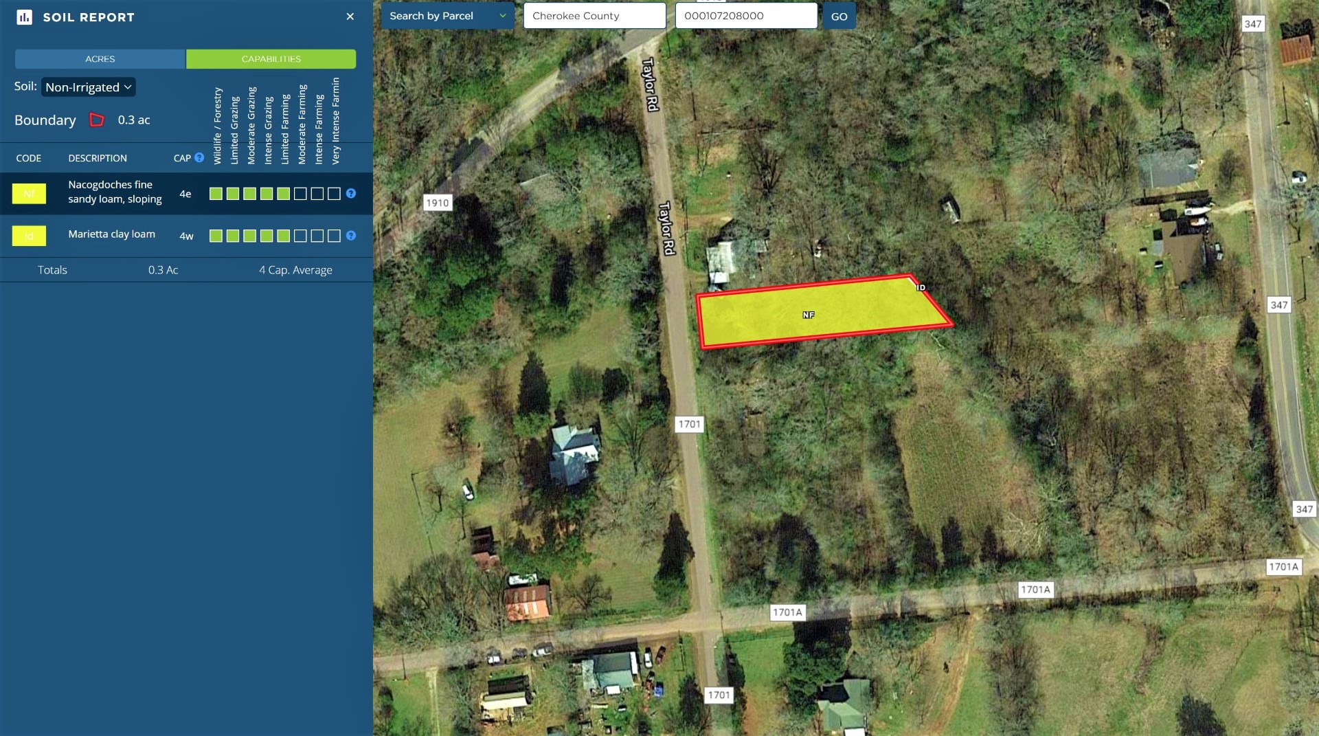 Search for detailed parcel information including; Elevation & Vegetation Maps, Ownership Information, Detailed Parcel Information, Crop History Map, Soil Survey Productivity Data, and more.