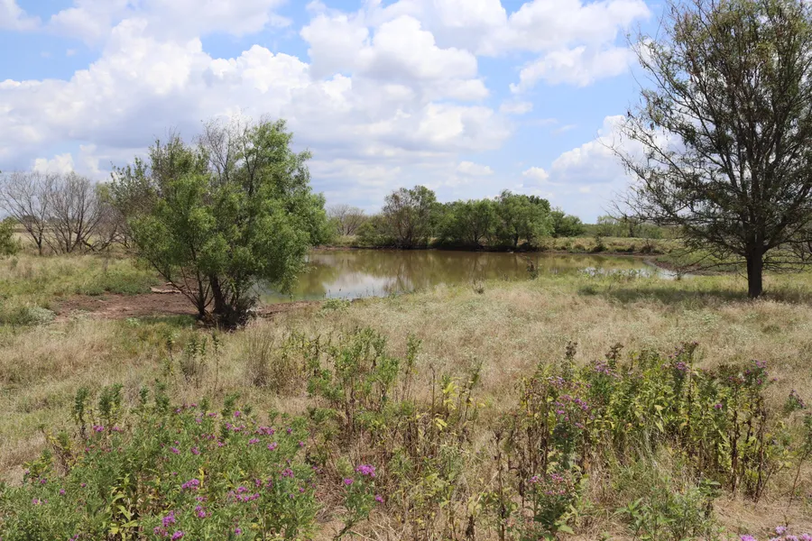 Terrain: Slightly rolling with large valley feeding ponds. Aproximately 85% cleared with improved and native grasses. 15% Hackberry, native hardwoods and Mesquite trees with plum thickets and brush cover.