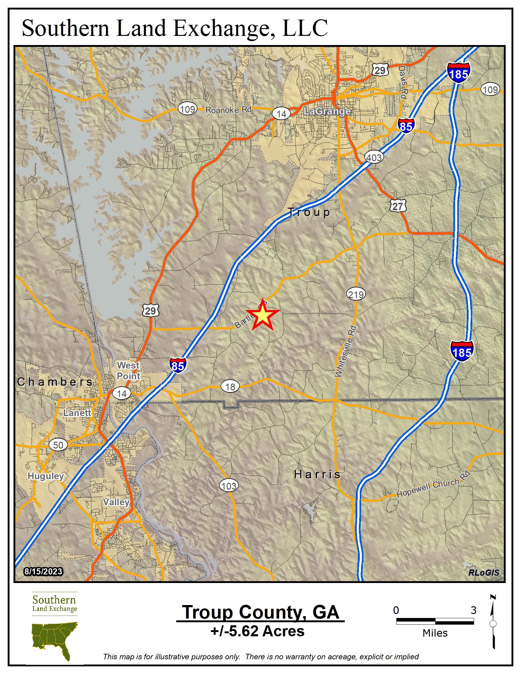 Amazing Home Site Near West Point. From I-85 take Kia Blvd Exit to Warner Rd, turn RIGHT. Turn Left onto Bartley Road. Turn RIght onto Jarrell