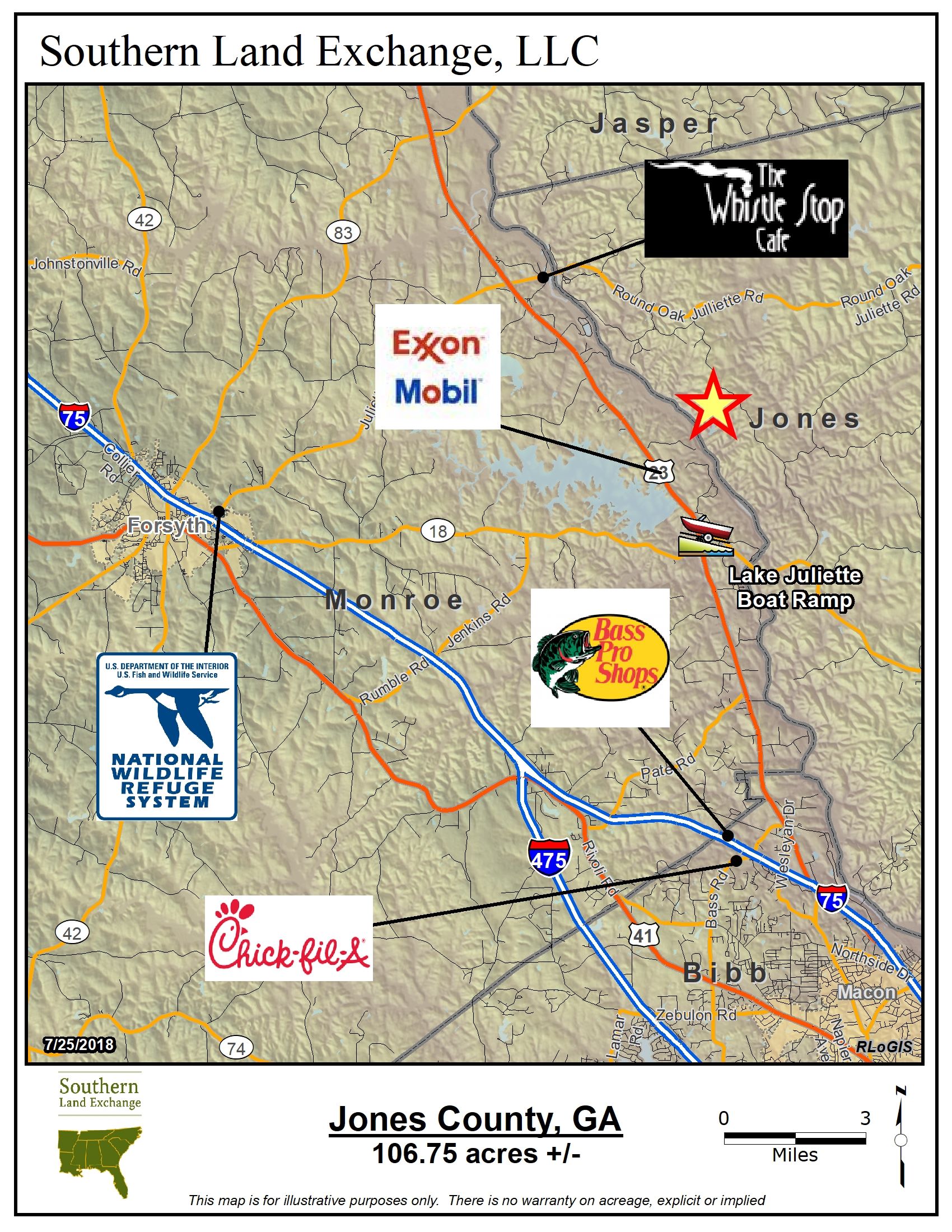 Whether youre looking for a primary residence with land in growing Jones County or a high-end hunting and fishing retreat, this is the place. Tucked away in a quiet, private area of Jones County you can be in Juliette in only 5 minutes and 15 minutes from north Macon. Across the street is 24,000 acres of Piedmont Wildlife Refuge never to be developed and always to remain abundant with wildlife and solitude.