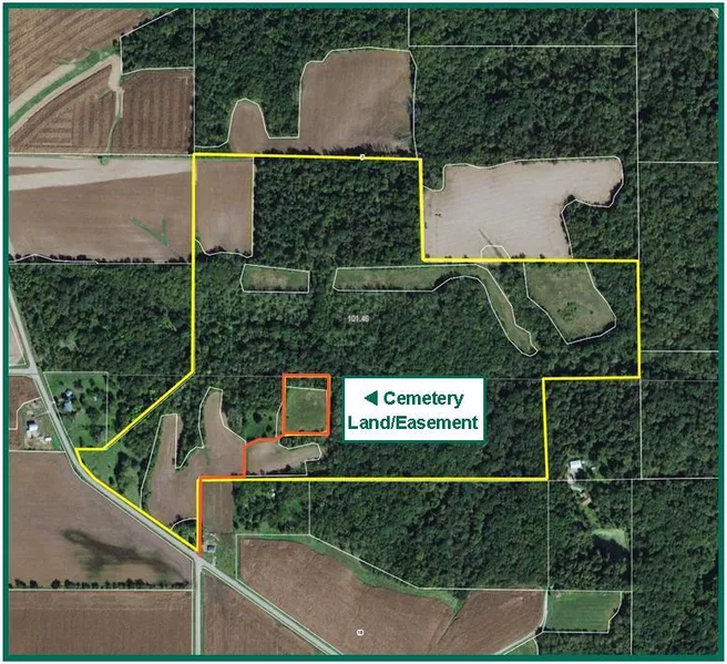 98.19 acres, m/l, with 21.13 est. FSA crop acres and a CSR2 of 67.5. Remaining acres are in timber. There is an easement for access to the cemetery on the southern portion of this parcel.