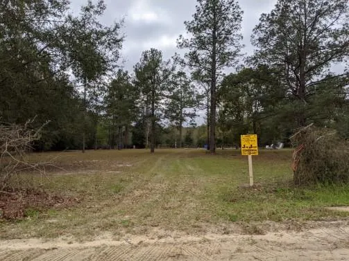 Jennings Acres - Lot 2 is mostly cleared with scattered large oak and pine trees. There used to be a mobile home on the property that has been removed. There is a well and septic tank on the property, but we are not guaranteeing they work. There is no requirement or timetable to build. However when you decide to build it must be 420 square feet or larger. Modular homes and mobile homes are allowed providing they meet the minimum square footage and are 20 years of age or newer when initially placed on the land. Farm animals are permitted. Camping is allowed 180 days out of the year.