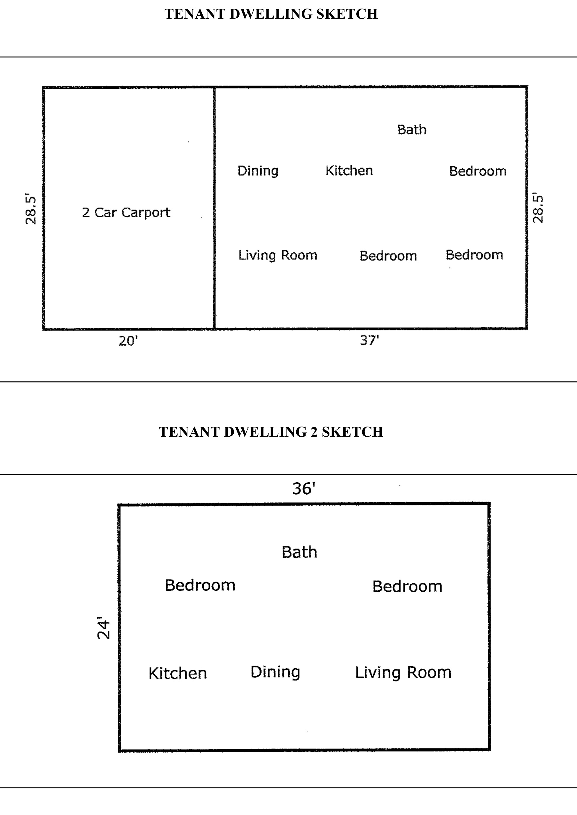 HOUSES. The 3,407-square-foot main house has two stories, three bedrooms and four baths. The master bedroom is on the first floor, while the other two bedrooms are upstairs. There is large great room flanked by a living room, dining room, and kitchen. A door from the great room provides access to a porch and patio area. The house also has a small basement and outbuilding. Two tenant dwellings offer the new owners an additional source of income with one house already occupied. One tenant dwelling has three...