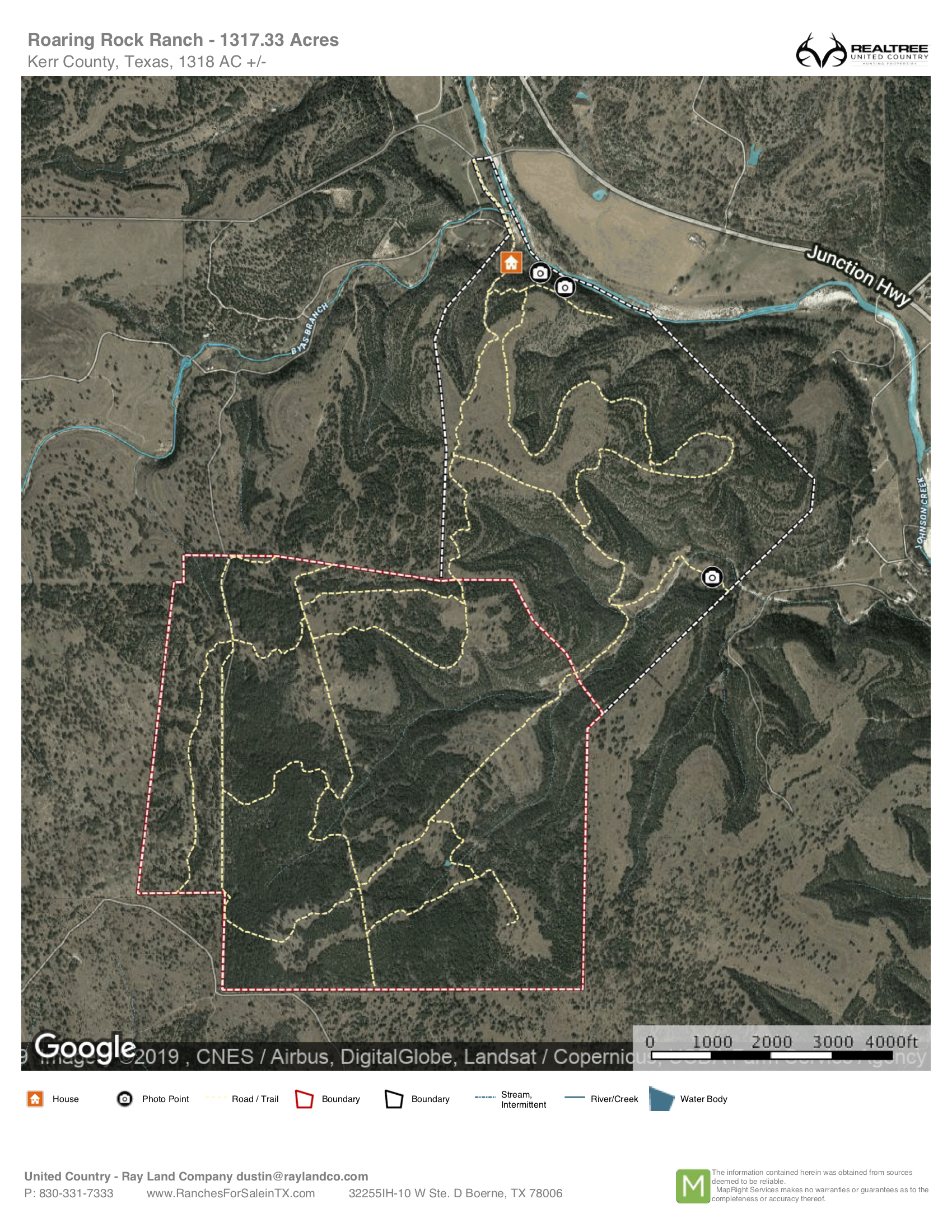 Major League Live Water Ranch for sale in the Texas Hill Country. Johnson Creek Ranch is located just outside of Kerrville and is less then 1.5 hrs from San Antonio. This ranch has over 3,500 ft of frontage along Johnson Creek. This is one of the strongest and cleanest creeks in Texas. The water clarity is amazing and the beauty is unmatched. Johnson Creek remains mostly accessible for a long stretch and as it moves downstream over the falls, it lays beneath a towering limestone bluff that the creek has carved out over time. The waterfall on this ranch is like none we've seen. Truly a one of a kind that spans the entire width of Johnson Creek. Ownership of the creek is on one side. There is only one neighbor on the other side of the creek and the flood plain is mostly on that neighbor's side. This should prevent any construction near the creek on that side helping to preserve the privacy for the owner of Johnson Creek Ranch. The neighbors across the creek (to this point in time) very rarely visit their ranch.