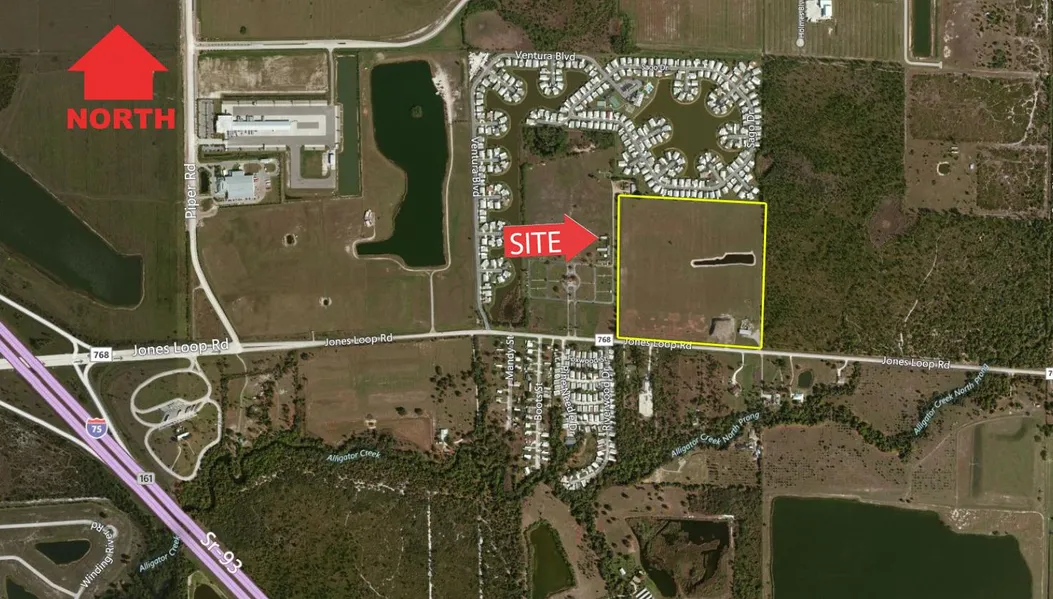 Jones Loop 40 is comprised of 40 acres located on the north side of Jones Loop Road in Charlotte County, Florida. The subject is situated approximately one mile east of I-75 which allows for easy access to northbound and southbound I-75. The Charlotte County Airport is located roughly 2.25 miles to the northwest of the subject property, and allows for easy access via Piper Road.