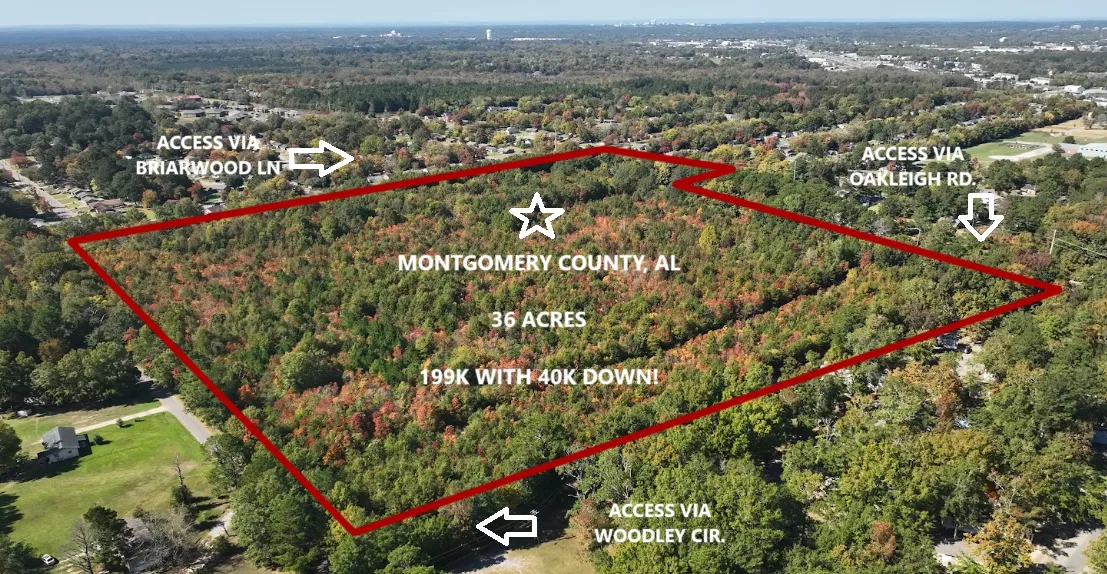 This exceptional 36-acre parcel within Montgomery city limits presents a compelling development opportunity with R-60-S residential zoning and complete utility infrastructure. Located just 17 minutes from downtown Montgomery, this flat, wooded property offers multiple gated access points via Oakleigh Rd, Briarwood Ln, and Woodley Cir.
