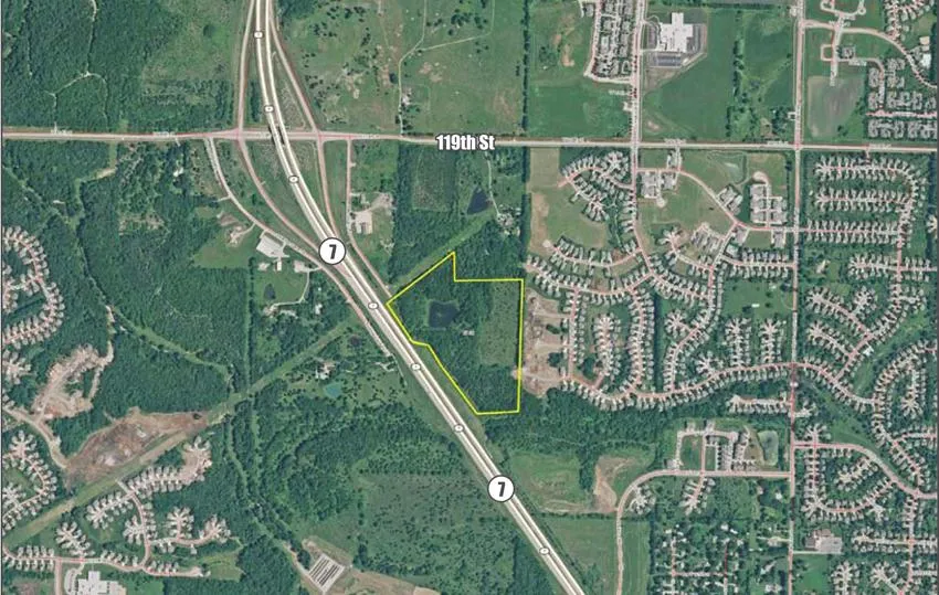 The property is on the east side of K-7 Highway and approximately 1/2 mile south of 119th Street on Monticello Terrace