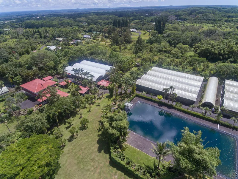 The home and business are located on 6 fully landscaped acres in Kurtistown, 12 miles south of Hilo. The commercial orchid business is housed in 3 ranges of greenhouse, plus 3 free standing - all Conley fixed steel frame. Interior greenhouse space is over 47,000 square feet. There is a covered potting area for orchids, a 500,000 gallon water reservoir, and an office in the packing shed.
