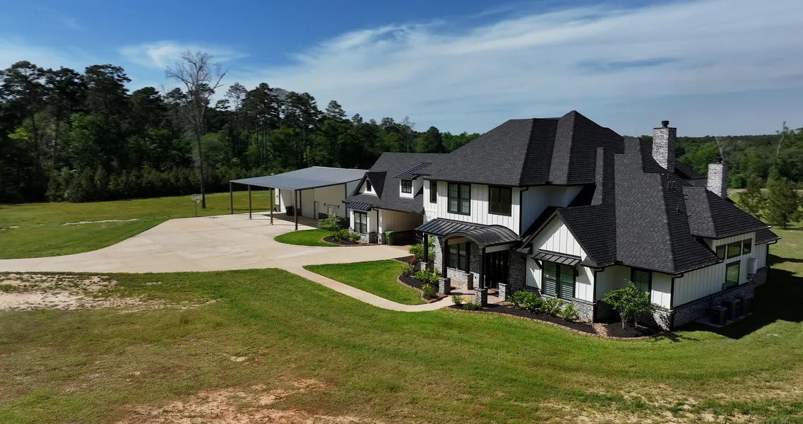 Spectacular Custom Home on 33 +/- acres surrounded on 3 sides by the Sam Houston National Forest. The gorgeous 5,424 sq. ft. home was recently completed with custom features and amenities throughout. The custom gated entry and asphalt driveway leads to the special private estate in the woods. The estate includes a Custom Pool & Spa with vanishing edge, Casita, large climate controlled Shop, four 12x12 rollup doors and two 20x60 front & rear awnings with adjoining living area/game room. The RV Pavilion is 32x50 with a concrete slab and multi-use options. The neighboring national forest creates unique wildlife, hiking, biking and horsebike riding opportunities on thousands of wildlife managed acres. Property has approx. 30' of elevation change and beautiful views. Additional features include, large concrete parking area, a pond & pier, creek, mixed species of trees, open & wooded areas, tr...